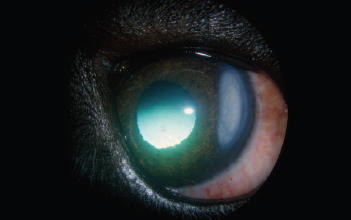 Los perros con esta condición pueden desarrollar distrofia lipídica corneal, que es una acumulación de lípidos y calcio dentro de la córnea. La condición también puede causar un humor acuoso lipémico que convierte el líquido en la parte frontal del globo ocular nublado, uveítis, sangrado y lipemia retinalis. Los perros con hipotiroidismo también son más propensos a desarrollar erosiones corneales no curativas. El tratamiento está dirigido a la causa principal del trastorno, pero si la lesión es superficial, la opacidad puede eliminarse mediante queratectomía.